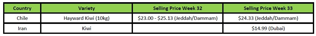 At present, only Chilean kiwifruit is available in the market, as the new season from Iran has yet to begin. Chinese kiwifruit has now started, marking the first time the Middle East will receive supply from China.