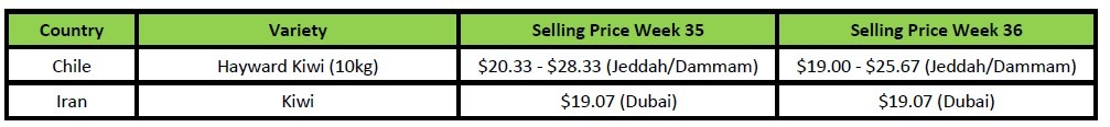 Kiwi fruit availability remains low following the conclusion of the Chilean season, with only limited volumes of the Hayward variety still in circulation. Supply of Gold kiwi is also constrained, with small volumes arriving from New Zealand and Italy. Shipments from Iran are yet to commence, leaving the market undersupplied in the short term. Despite limited supply, prices have dropped.